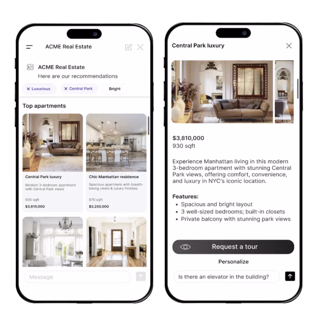 Alex plays the role of a strategic copilot for sales teams, delivering real-time, actionable insights to help agents maximize deal value. From identifying upsell opportunities to crafting personalized offers, preparing client-ready proposals, and even generating tailored selling arguments for each product, he equips agents with the intelligence they need to accelerate the sales cycle. He can also retrieve real-time information about a client’s past home purchases or inquiries within the same agency, helping agents understand a client’s overall preferences before a viewing, perfect for tailoring the experience, especially for luxury real estate agents.
