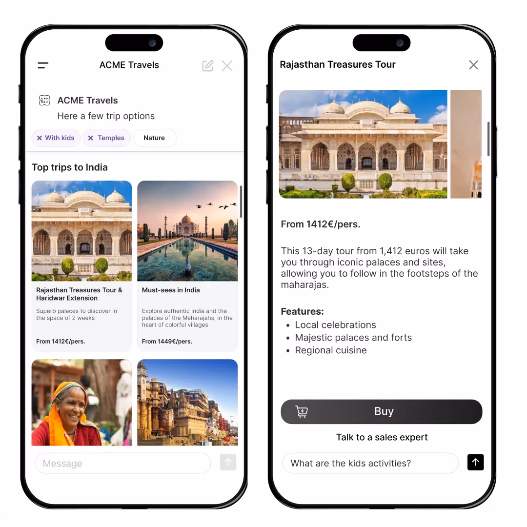 - Advanced product search and recommendation: based on natural language queries, recommend tailored travel options from the product catalog in the conversation
